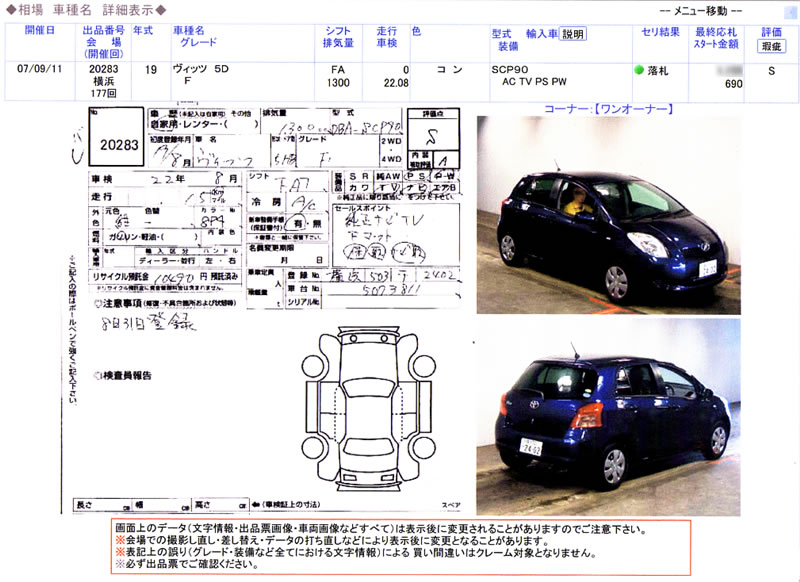 オークション票を皆様に、開示させていただきますので、公正な立場に立った検査員の検査による、外装・内装のチェックを皆様に開示させていただきます。